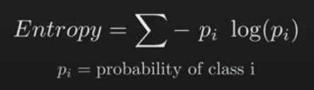 Instead of entropy gini index can also be used - saves computation time.